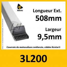 La courroie de motoculture 3L est renforcée grâce à son tissu Extérieur et son câblage aramide (Kevlar@)