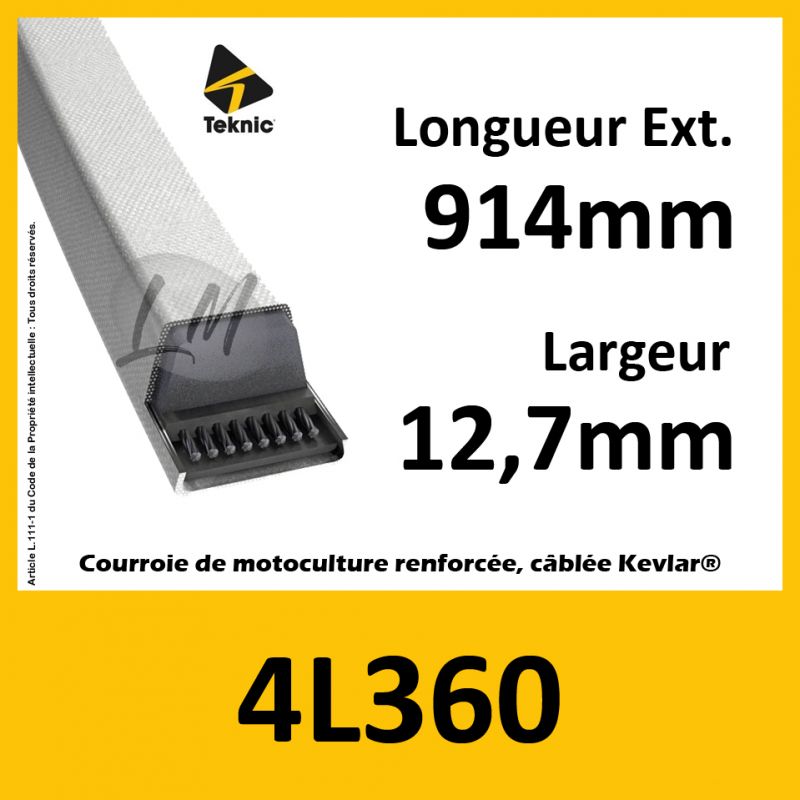 La courroie 4L360 est spécialement conçue pour tous les travaux de motoculture.